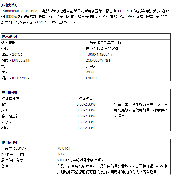 现在订购德国舒美防霉剂parmetol DF19,享受零风险承诺、假一赔十、闪电发货的服务保障!